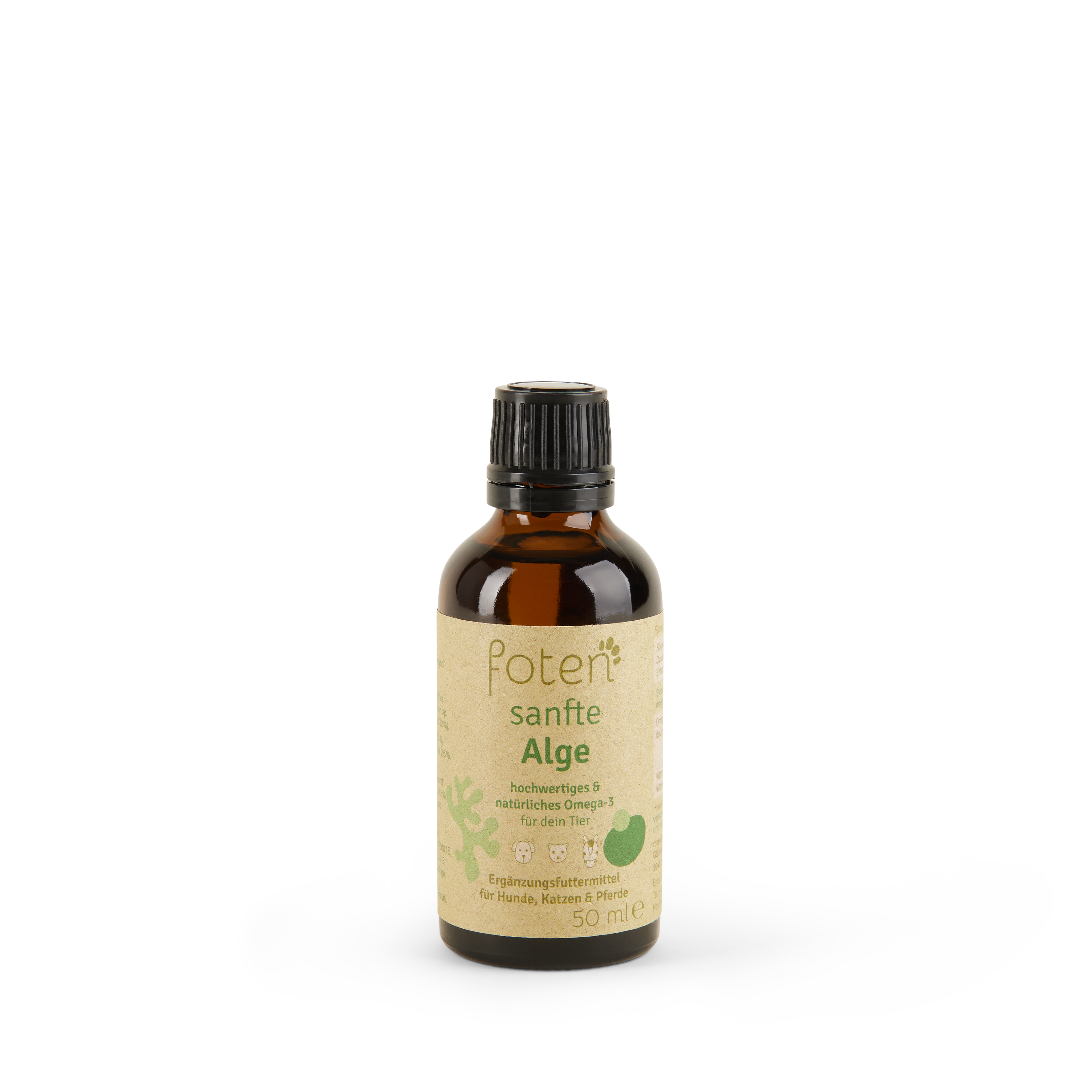 Speziell für uns von foten in Deutschland produziert, stammt unser Algenöl für Hunde aus nachhaltiger Kultivierung in Nordamerika. Bei der Dosierung kommt es immer auf das Gewicht des Tieres an. Gerne beraten wir Sie, alternativ kann Ihnen auch Ihr Tierarzt oder Ihre Tierärztin weiterhelfen.
