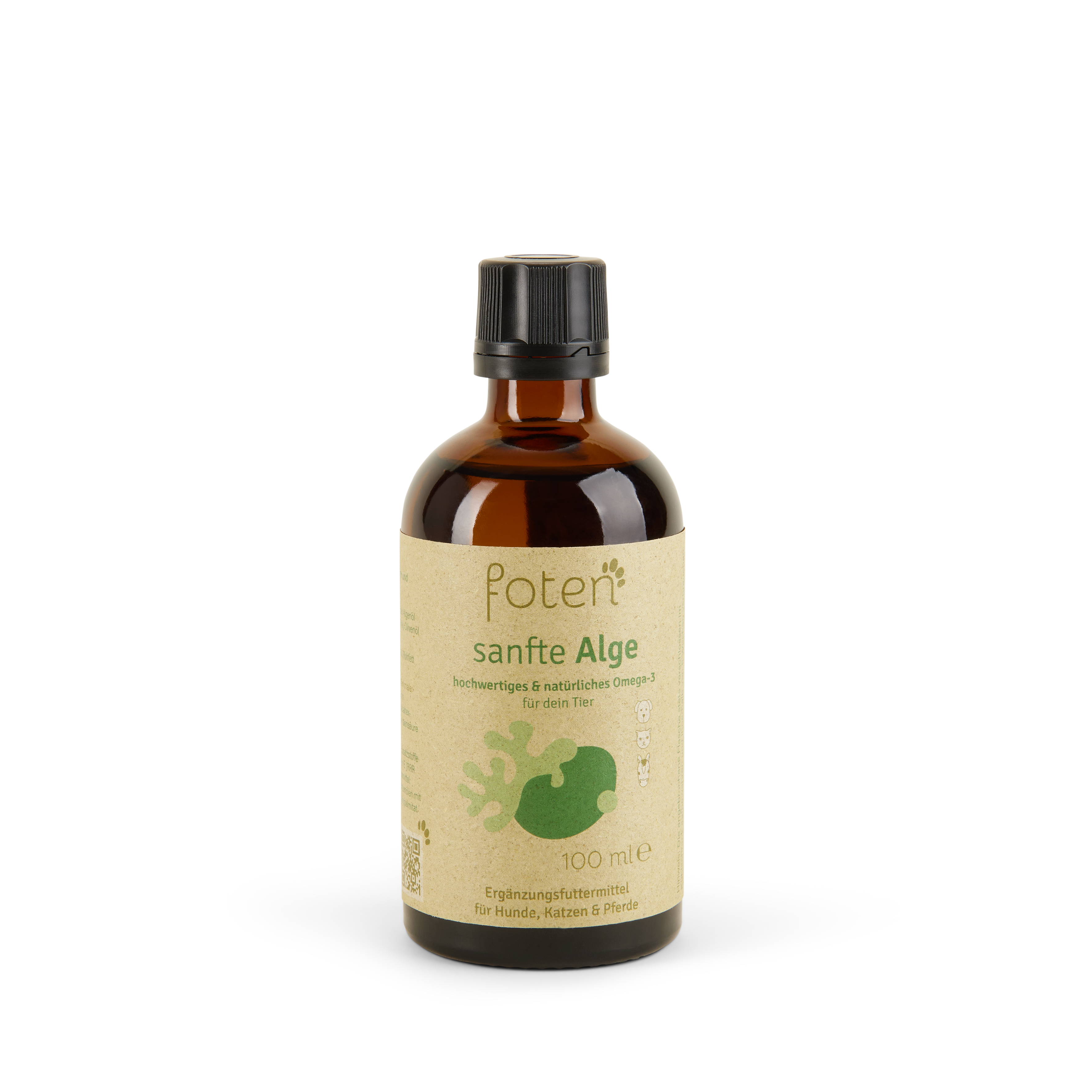 Wir von foten bieten Ihnen hochwertiges Algenöl an, das speziell für die Bedürfnisse Ihres Hundes entwickelt wurde. Unser Produkt „Sanfte Alge“ basiert auf der Mikroalge Schizochytrium sp. und wird nachhaltig in Nordamerika kultiviert. Es enthält 75% Algenöl, ergänzt durch 23% biologisches Olivenöl als natürliches Antioxidans und 2% Sonnenblumenöl. Unsere Verpackung besteht aus vollständig recycelbaren Braunglasflaschen, und wir versenden umweltfreundlich mit DHL GoGreen. Wenn Sie bei uns Algenöl kaufen, unterstützen Sie nicht nur die Gesundheit Ihres Hundes, sondern tragen auch zum Schutz der Umwelt bei. Zudem spenden wir von jedem verkauften Produkt 5 Cent an gemeinnützige Organisationen, die sich für den Erhalt der Artenvielfalt in unseren Meeren einsetzen.